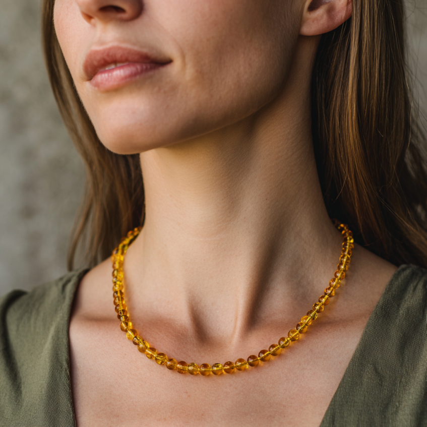 הענבר הבאלטי ידוע בתכונותיו המרגיעות ובאנרגיה הרכה שהוא מקרין, והשרשרת מהווה תוספת מושלמת לכל הופעה.